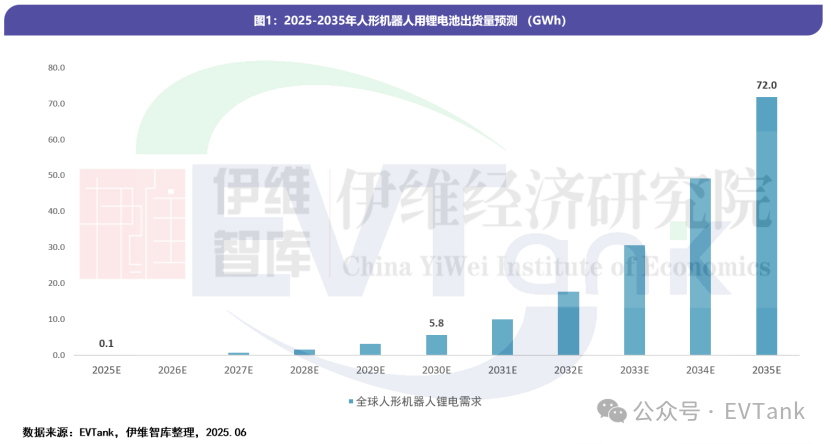 近日,研究机构EVTank联合伊维经济研究院共同发布了《中国人形机器人行业发展白皮书(2025年)》,EVTank指出人形机器人将为锂电池尤其是固态电池带来新的增量市场,预计2025年人形机器人用锂电池的市场规模将超过1亿元。随着人形机器人在工业领域、服务和家庭领域等多场景应用的加深,2035年将同步带动人形机器人用锂电池出货量达到72GWh,市场规模达到360亿元。