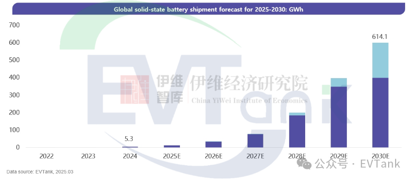 EVTank expects all-solid-state batteries to achieve small-scale mass production by 2027 and larger-scale shipments by 2030. The“White Paper on the Development of China's Solid-State Battery Industry (2025).” forecasts that global solid-state battery shipments will reach 614.1 GWh by 2030, with all-solid-state batteries accounting for nearly 30% of the total.